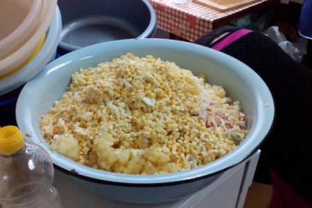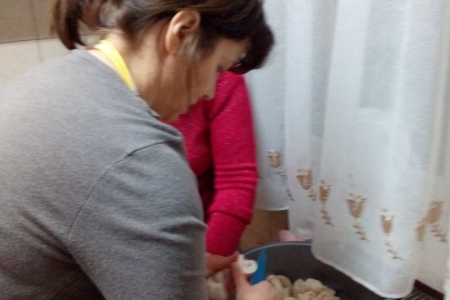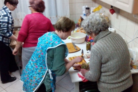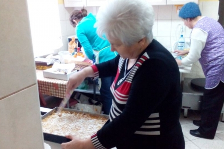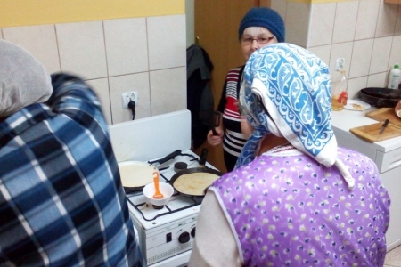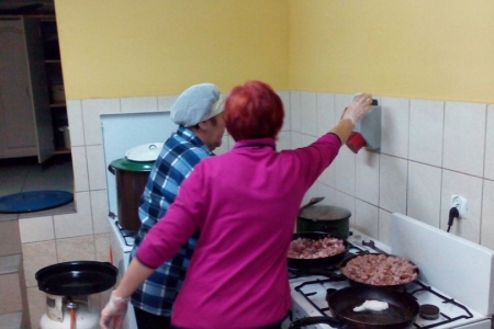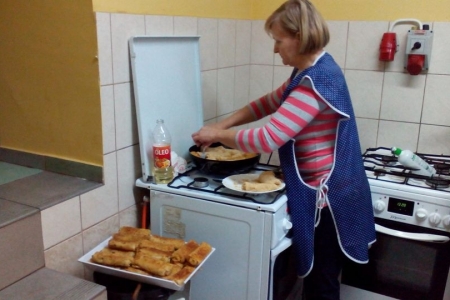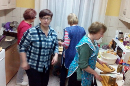 30 stycznia odbyły się pierwsze warsztaty kulinarne w tym roku. Panie miały nie lada wyzwanie - przygotowywały poczęstunek na 100 osób, na wieczorek pokoleniowy. Były zarówno sprawdzone już przepisy jak i zupełnie nowe, bo zasadą jest że ciągle uczymy się czegoś nowego. Był więc barszcz, krokiety z warzywami, karkówka w pieczarkach (nowość której nauczyła nas Danusia Prorok), sałatka królewska z ananasem oraz sałatka z makaronem ryżowym i ogórkiem - również nowość, którą przywiozłam z warsztatów kulinarnych w Bukowicach. Gotowanie było w tym dniu szczególnie przyjemne, ponieważ właśnie w tym dniu dojechały do nas patelnia elektryczna i taboret elektryczny - nowe wyposażenie kuchni, które zakupiliśmy w ramach nagrody za Najaktywniejsze sołectwo w Dolinie Baryczy.