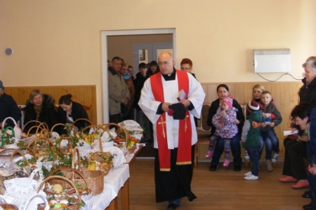 W Wielką sobotę przed południem mieszkańcy sołectwa przynoszą do świetlicy wiejskiej swoje koszyczki z tradycyjnymi potrawami świątecznymi czyli "święconkę".