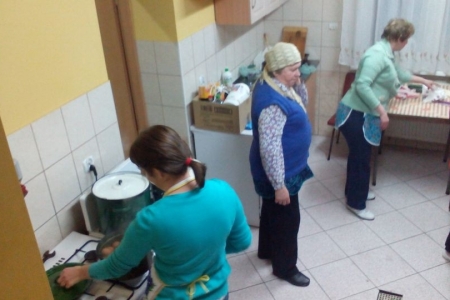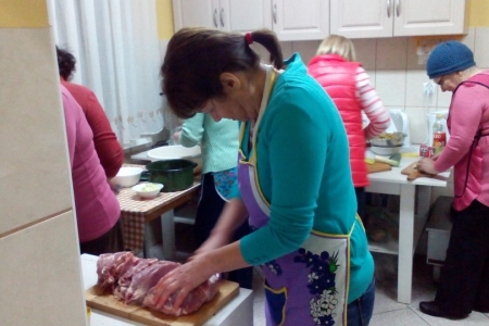 Tradycyjnie, przed Dniem Kobiet, panie spotkały się w piątek w świetlicowej kuchni aby zapewnić sobie konsumpcję na kobiecy wieczór. Stała grupa zaangażowanych kobiet, przygotowywała wymyślone wcześniej potrawy, natomiast panowie z OSP Łazy pod nadzorem Sołtyski oraz kilku innych pań w tym samym czasie przygotowywała salę do imprezy - ustawiano stoły, szykowano dekoracje by wszystko wyglądało perfekcyjnie podczas kobiecego wieczoru.