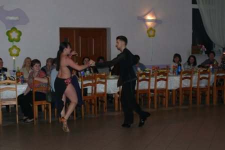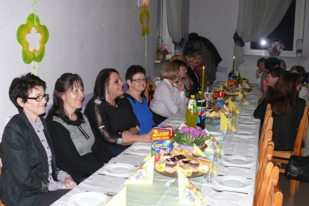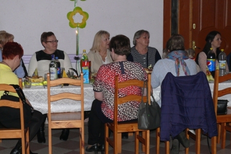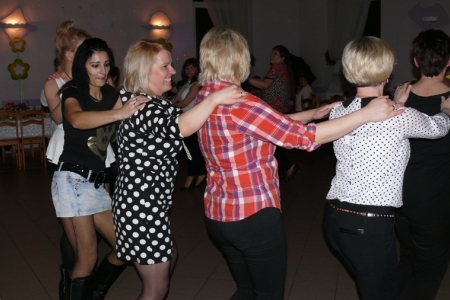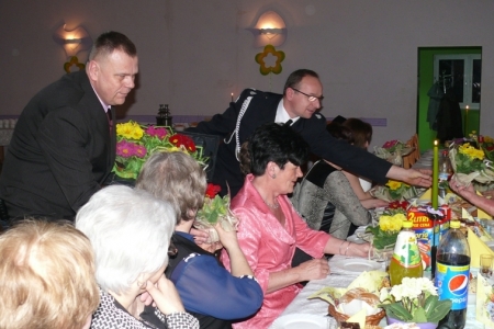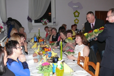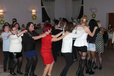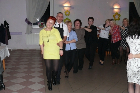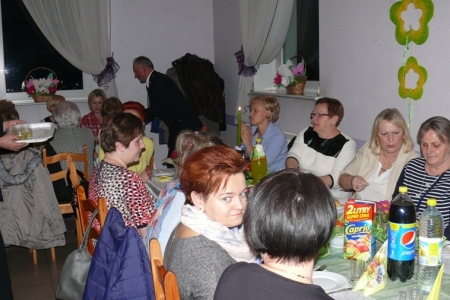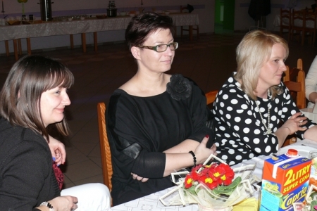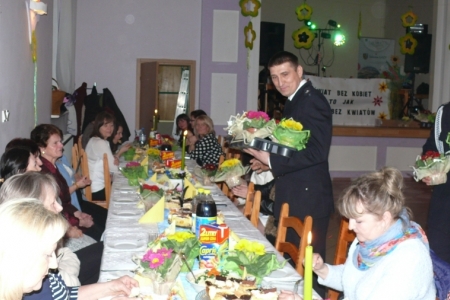 Spotkanie kobiet rozpoczęło się o godzinie 18.00. Panie zasiadły za pięknie przygotowanymi stołami, a panowie z OSP zajęli się obsługą. Imprezę poprowadził DJ Lech, panowie wręczyli wszystkim paniom po pięknej kolorowej prymulce, dzięki którym na naszej świetlicy zrobiło się bajecznie kolorowo. Jako niespodzianka - wystąpiła para tańca towarzyskiego, prezentując przepiękne tańce i wprawiając w zachwyt przybyłe panie. Panie wspaniale się bawiły do północy, tańcząc, spożywając wyśmienite dania i tocząc ciekawe rozmowy w swoim "babskim" towarzystwie.