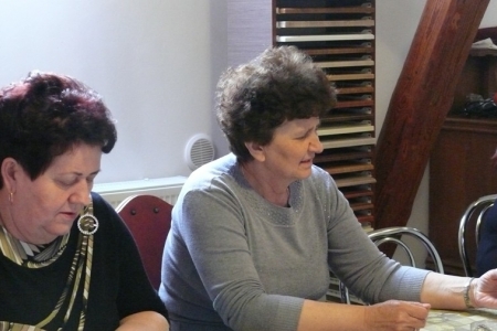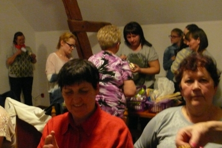 Na miejscu przywitała nas Pani Sołtys Anna Rudkiewicz i zainteresowane warsztatami mieszkanki Lędziny. Tematem warsztatów była nauka zdobienia metodą decoupage.