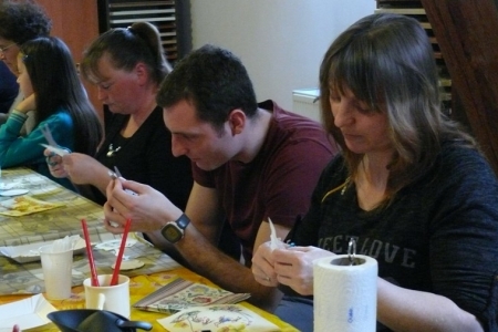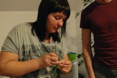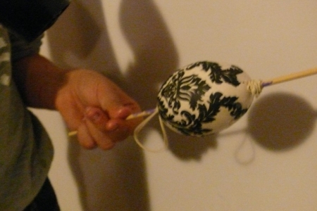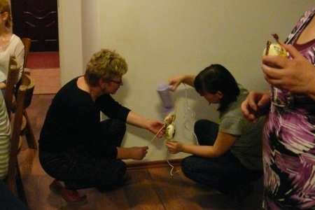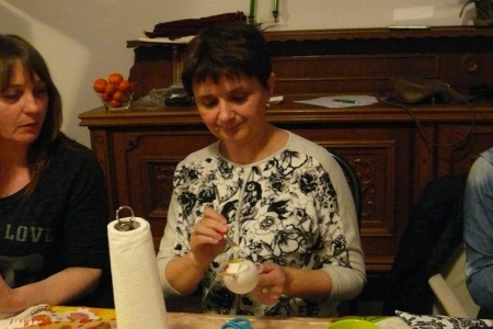 Ponieważ wszystko dzieje się przed Świętami Wielkanocnymi zdobieniom „poddano” drewniane jajka a kiedy Panie opanowały tę łatwiejszą formę zdobienia, trudność zadania bardzo wzrosła.
