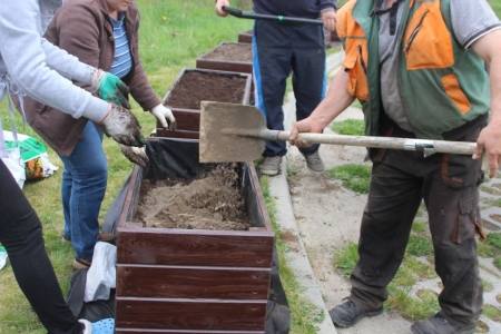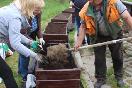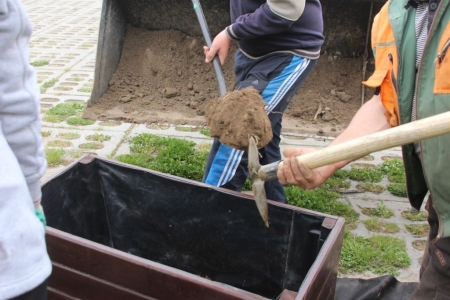 Do skrzyń,wsypano ziemię, z dodatkiem ziemi gruntowej, dedykowanej nowo zasiewanym roślinom. Każda ze skrzyń zaopatrzona zostanie w opisy, informujące o nazwie i rodzaju zasianego zboża czy rośliny. Wszystkie skrzynie zostały też obsypane drobnymi kamieniami.