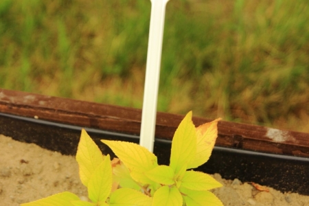 Każda z zasianych roslin,została zaopatrzona tabliczką informacyjną, z nazwą rośliny.