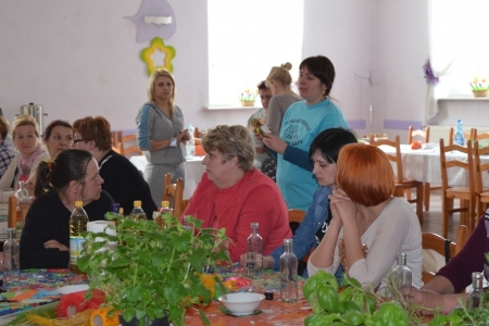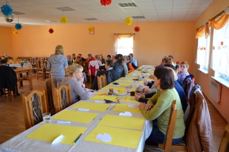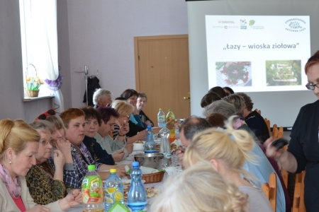 Ostatnim punktem objazdu były Łazy, więc już jako gospodarze przywitaliśmy przybyłych. Na obiad zaserwowaliśmy oczywiście zupę cioci Halinki oraz łazanki i paluchy ziołowe. Był oczywiście quest "Zdrowe i pachnące Łazy" oraz prezentacja działalności wsi na slajdach oraz w postaci naszego rękodzieła. Podczas warsztatów pokazaliśmy jak wykonać samodzielnie zioła w oliwie lub occie. Niestety wszystko co dobre musi się kiedyś skończyć, więc nasi goście odjechali do swoich domów.