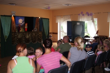 W sobotę 21.07. 2012 r w świetlicy o godz.15 .30.wystąpiła Poznańska Scena Lalkowa z przedstawieniem ,, Nowe Przygody Tomka Wszędobylskiego'' .Teatrzyk wywołał radosne uśmiechy na twarzach naszych dzieci, a one odwdzięczyły się gromkimi brawami.