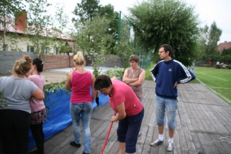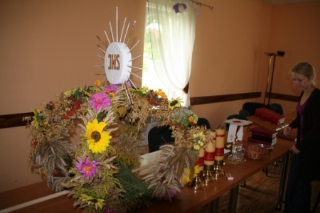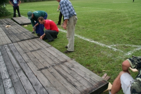 W sobotę, już od południa mieszkańcy wsi zebrali się na boisku w celu przygotowania trenu przed dożynkami.