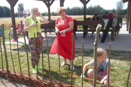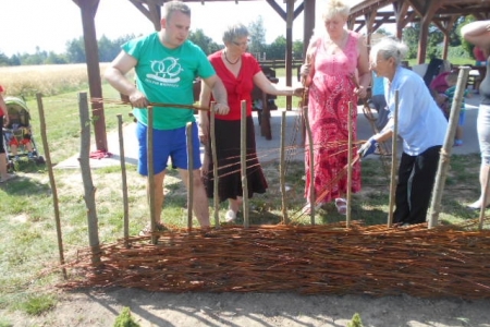 20 lipca w Dziadkowie, odbyły się kolejne warsztaty rękodzielnicze w ramach projektu "Osada Leśnego Dziada". Tym razem tematem warsztatów, było wikliniarstwo, a konkretnie został wypleciony płot z wikliny, za Świetlicą Wiejską przy wiatach. W zajęciach udział wzięli aktywni mieszkańcy naszej wsi z dziećmi, wraz z czynnym udziałem mieszkańców Sołectwa Miłosławice z Panią Sołtys Wsi na czele. Prace na świeżym powietrzu przebiegły sprawnie i w miłej atmosferze, a przygotowany w trakcie zajęć grill, zaspokoił apetyty wszystkich wygłodniałych. Nad przebiegiem prac, czuwał Prezes Stowarzyszenia "Leśne Dziady", Marcin Mruk. Dziękujemy wszystkim mieszkańcom za udział w zajęciach, oraz podziękowania dla Stowarzyszenia "Nad Baryczą" za aktywny udział w naszych warsztatach.