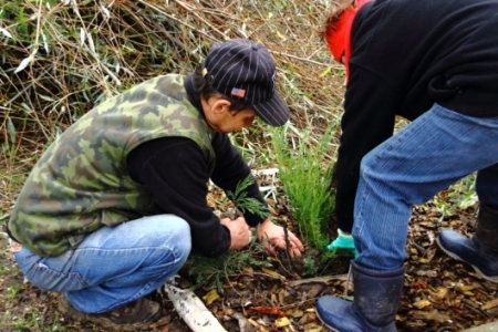 6.Posadzono rząd sadzonek krzewów wzdłuż ściany świetlicy,od strony boiska