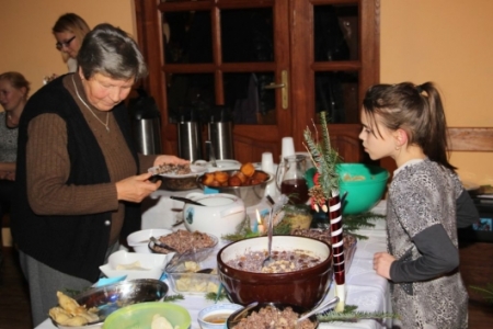 Na koniec odbyło się wspólna degustacja przyniesionych potraw, które przygotowali mieszkańcy Duchowa i Rudy Milickiej. Nie zabrakło żadnej, wymaganej tradycją -potrawy.Były m. innymi; karp, był groch z kapustą, pierogi,maca,kutia,były pączki…ziemniaczane. Było wiele innych potraw i przysmaków, których nie sposób tu wymienić...