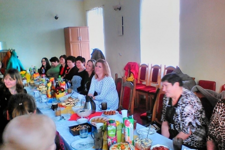 Pieknie udekorowano świetlicę, przygotowano poczęstunek, a trzech młodych przedstawicieli męskiego grona naszych mieszkańców przygotowało krótką część artystyczną.