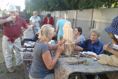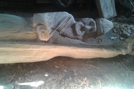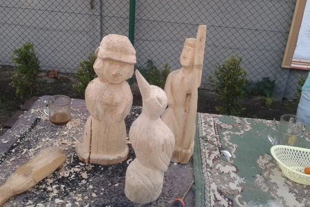 W dniu dzisiejszym oprócz pracy nad swoją rzeźbą, udaliśmy się także z wizytą do pracowni pana Mariana, by podziwiać powstające wielkie dzieło jakim jest figura św. Wojciecha.Oglądaliśmy rzeźby wykonane przez mistrza te pierwsze i te ostatnie. Dostrzegliśmy w nich dużą różnicę i stwierdziliśmy, że praca czyni mistrza. Po powrocie zabraliśmy się do dalszej pracy. Czas biegnie nieubłagalnie . Już za tydzień kończymy nasze zmagania z drewnem.