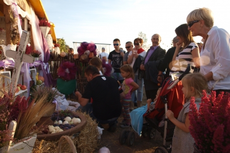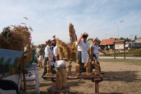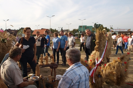 Nasza delegacja uczestniczyła wczoraj w pięknej uroczystości dożynkowej. Braliśmy udział we Mszy świętej, paradnym korowodzie , pokazaliśmy naszą działalność wystawiając się w drewnianym domku, który na konkurs trzeba było ładnie udekorować. Były nasze rzeźby wykonane z projektu Słaczno rzeźbą słynie oraz nasz ludowy artysta pan Marian, prezentowaliśmy puchary i medale zdobyte w locie gołębi pana Darka, zboża i miody rolnika Jarka, a także prace rękodzielnicze z klubu aktywnych kobiet.