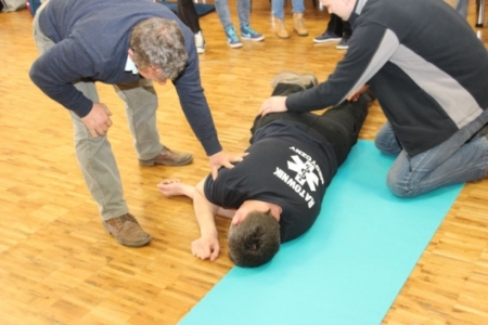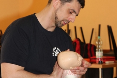 Oprócz wiedzy teoretycznej, szkolenie w większości poświęcone było nabyciu praktycznych umiejętności w zakresie niesienia pomocy w nagłych wypadkach. W trakcie szkolenia było wiele aktywnych ćwiczeń i tzw. symulacji. To ważne. Każdy przypadek jest inny i często zaskakujący.Ważne by umieć potrafić się odpowiednio zachować i odnaleźć w danych okolicznościach oraz nieść skuteczną pierwszą pomoc przedlekarską. Każdy uczestnik mial mozliwość przećwiczenia m. innymi; ułożenia ciała poszkodowanego w pozycji bocznej bezpiecznej, umiejętnośći oceny stanu osoby poszkodowanej, wykonania tzw. masażu serca, obsługi i użycia defibrylatora itd. Natomiast młodzi rodzice z dużą uwagą i zainteresowaniem wsłuchiwali sie w temat dot. postępowania w przypadku zakrztuszeń i zadławień u małych dzieci.