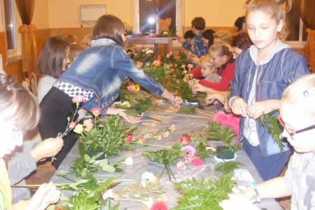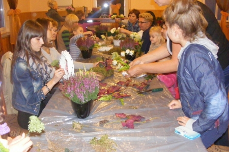 Dzisiaj odbyły się zajęcia z bukieciarstwa, czyli sztuki układania kompozycji kwiatowych z żywych i sztucznych kwiatów. Zajęcia prowadziła p. Ewa Głowacka - właścicielka kwiaciarni z Milicza. Wzięło w nich udział 18 osób, które z wielką pasją podeszło do przygotowanych dla nich zadań. Szczególną radośc wzbudziło układanie kompozycji z żywych kwiatów. Sama przyjemność w październikowy wieczór. Każda uczestniczka zajęć zabrała swoje kompozycje do domu.