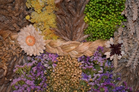 ETAP 3 - gromadzenie materiałów. Zboże już czekało od lipca, przygotowali je panowie Adam Skrzypczyk i Marian Mazik. Kwiaty zebrały panie, resztę zakupił na giełdzie pan Krzysztof Sobczyk.