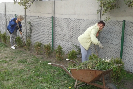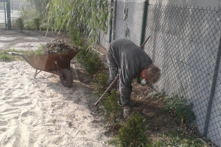 Na moją prośbę przybyły dwie kobietki Janka i Bronia, które solidnie wypieliły chwasty wokół zielonych drzewek. Przyszedł też Artur ze swoją żoną Gabrysią ,aby zamocować rolety w oknach, powiesić dyplomy na ścianach po remoncie. Prace wykonane a kawka poranna wypita.
