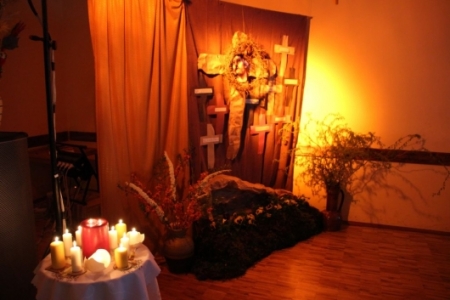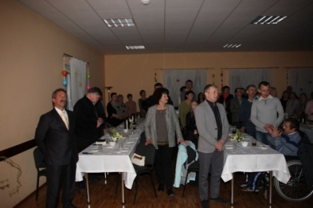 W tym dniu w świetlicy zapanował świąteczny wystrój i nastrój. Typowa dla tego święta dekoracja; wielkie kolorowe pisanki, kolorowe zajączki, kolorowe palmy, płonące świece, wizerunek Pana Jezusa w koronie cierniowej. Nastrojowe oświetlenie. Przekaz artystów - amatorów płynący z zaimprowizowanej sceny, opowiadał , wyjaśniał i komentował istotę tych wielkich świąt. W treści Misterium pojawiły się wiersze Herberta, księdza Twardowskiego, Baczyńskiego. Było o ogrodzie oliwnym, o biczowaniu, o cierpieniu i śmierci. Były uderzenia młotem, który przybijał, było bicie serca, były odgłosy żywiołów… Ważne treści były też zaśpiewane. Było o Golgocie, o przymierzu i o tym by się nie lękać. Wszystko to po to by licznie zgromadzonym w tym dniu w świetlicy, przypomnieć historię sprzed ponad dwóch tysięcy lat. Na koniec był radosny akcent, bo o zmartwychwstaniu ! Wtedy wszyscy wstali i razem śpiewali o tym, by się …nie lękać !