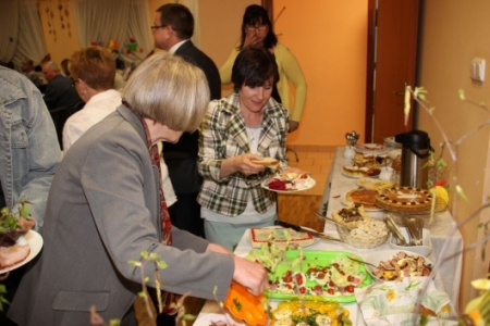 Później był wspólny poczęstunek. Gospodarze spotkania – mieszkańcy Duchowa i Rudy Milickiej przygotowali wspaniałe potrawy. Ilość i rodzaj ciast trudno zliczyć i poprawnie nazwać. Dominowały różnorodne formy mazurków, serników, babek... Był żurek, była kawa herbata. Nie brakowało niczego !