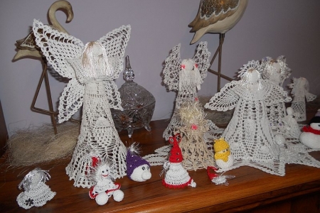 W galerii anioły wykonane na szydełku przez p. Kasię i p. Ewę i frywolitkowe gwiazdki wykonane przez panie prowadzące zajęcia.
