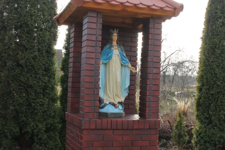 chyba mamy prawo tak ją prywatnie nazywać, tę naszą zupełnie nową figurkę przydrożną, kóra powstała wyłącznie z dobrowolnych składek mieszkańców oraz ludzi dobrej woli, przy bardzo dużym zaangażowaniu grupy osób, które bezpośrednio brały udział przy wszelkich pracach związanych z jej powstawaniem.