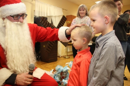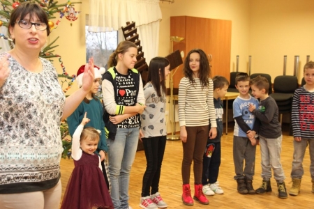 Czas oczekiwania na przybycie Mikołaja dzieci spędziły na wspólnych zabawach. Były zabawy integracyjno-taneczne na parkiecie, gdzie dzieci pod wodzą doświadczonego opiekuna tańczyły i bawiły się. Mimo pewnych oporów w początkowym okresie zabawy, po chwili dzieci zintegrowały się na parkiecie i zabawa zaczęła się na dobre. Później przyszedł czas samodzielnej pracy. Każde z dzieci mogło wykonać samo, lub pod opieką rodzica - prace świąteczną,do wyboru; wykonanie ozdoby choinkowej, kolorowanie rysunków o tematyce świątecznej, ozdabianie styropianowych bombek... Dzieci zostały zaopatrzone w odpowiednie narzędzia typu; kredki,ołówki,flamastry oraz inny asortyment potrzebny do tej pracy. W trakcie całej zabawy panowała radosna atmosfera. W tle leciała dziecięca muzyka świąteczna . W końcu nadszedł czas na spotkanie z prawdziwym Mikołajem.Kiedy Mikołaj pojawił się w sali,serdecznie przywitał się z dziećmi, a następnie zasiadł na przygotowanym specjalnie dla niego krześle.Po chwili każde z dzieci podchodziło do Mikołaja, aby otrzymać od niego paczkę. W osobistym spotkaniu z Mikołajem trzeba było odpowiedzieć na pytania zadawane przez Mikołaja.Najczęściej były to pytania o wiek i imię, czasami o umiejętność zaśpiewania piosenki lub powiedzenia krótkiego wierszyka. Tradycyjnie, nie mogło zabraknąć pytania o to, czy dziecko było grzeczne przez cały rok ? Na szczęście wszystkie dzieci jednomyslnie potwierdzały, że były absolutnie bardzo grzeczne i w pełni zasługuiją na otrzymanie paczki od Mikołaja, co ikołaj czynił z wielką ochotą.Dziękujemy serdecznie MIkołajowi za jego wizytę i obecność. I już teraz zapraszamy do następnych odwiedzin, za... rok !