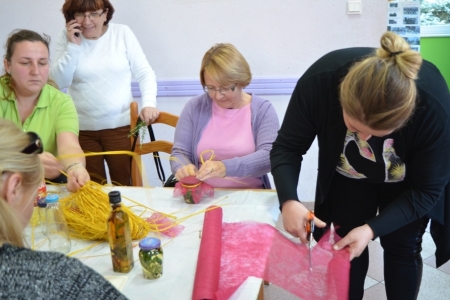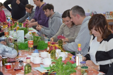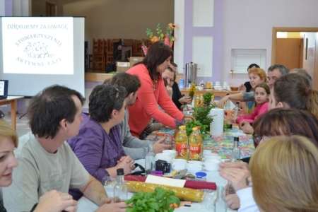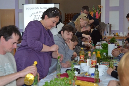 Sołtys Izabela Chaszczewicz opowiedziała o działaniach w naszym sołectwie. Następnie przeprowadziła warsztaty „zioła w zalewie”. Każdy uczestnik zajęć przygotował w butelce zioła z przyprawami zalane olejem lub octem, a następnie wykonał dekorację oraz opisał zawartość butelki i zabrał swoje „dzieło” do domu.