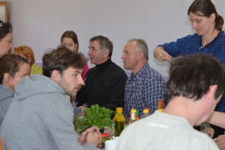 Wymieniono się uwagami i doświadczeniami. Wizyta zakończyła się obiadem, na który tradycyjnie podano zupę gulaszową cioci Halinki oraz paluchy ziołowe.