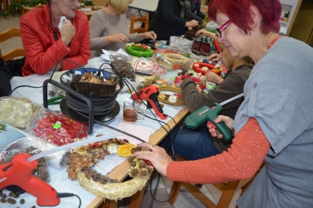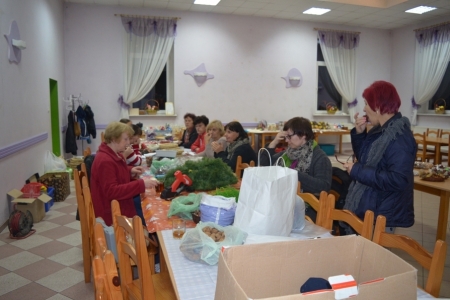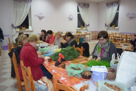 W poniedziałek 9 listopada ponowie spotkały się panie z naszego sołectwa aby wykonać wianki adwentowe lub bożonarodzeniowe. Panie chętnie wzięły się do pracy wyczarowując piękne wianki - były naturalne i bardziej odświętne i kolorowe, każdy inny, piękny... Po skończonej pracy wspólnie wypiłyśmy herbatę i zjadłyśmy ciasto, umawiając się jednocześnie na następne spotkanie w grudniu.