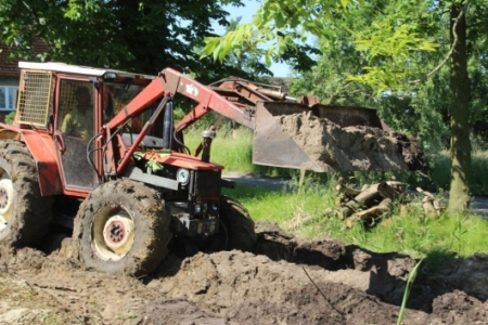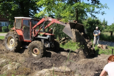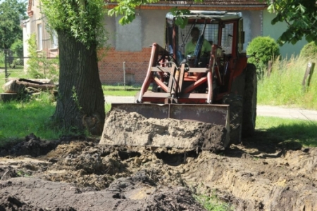 W sobotę, 7 czerwca 2014 roku ,kilkanaście osób, pod wodzą sołtysa wsi ,o godzinie 10-tej podjęło trud wykonania określonego zadania. Tym wyzwaniem były hałdy ziemi zalegające w miejscu obok świetlicy wiejskiej, gdzie wkrótce powstanie mały plac zabaw dla dzieci. Pracy było sporo, ale i zaangażowanie osób biorących udział przy pracach – godne podziwu ! Przy pomocy traktora wyposażonego w łychę spychową oraz ręcznego sprzętu typu łopaty i grabie - zasilanych siłą ludzkich mięśni, uporano się z hałdami ziemi. Teraz jeszcze potrzeba trochę czasu, aby ziemia się uleżała i za jakiś czas kolejny etap prac: montaż urządzeń do zabawy dla dzieci oraz wykonanie ogrodzenia miejsca.