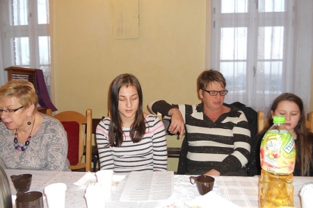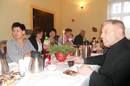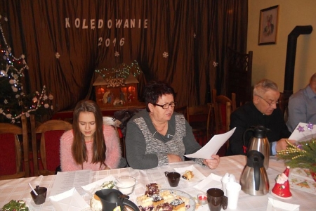 Kolędowanie 2016 zakończone. Dziękujemy wszystkim, którym chciało się wyjść z domów a w szczególności ks. Stasiowi. Oczywiście najważniejszym punktem spotkania było wspólne śpiewanie kolęd. A śpiewaliśmy całe kolędy, niektóre miały blisko 10 zwrotek. Było też coś dla ciała przepyszne ciasta (wypieki p. Ewy, Kasi i Ani), gorąca kawa , herbata i grzaniec. O wystrój stołów, jak zwykle zadbała Kasia. Mamy nadzieję, że w naszej wiosce narodzi się nowa tradycja i w przyszłym roku też się spotkamy. A więc do zobaczenia za rok.