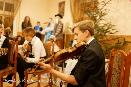 Piękna zimowa sceneria na zewnątrz, przytulne ciepło i zapach siana z zaaranżowanej betlejemskiej stajenki, chętni do wspólnego śpiewania ,to czynniki, które zagwarantowały wspaniałą , radosną atmosferę kolędniczego spotkania w Potaszni. Rozpoczęli je uczniowie Publicznego Gimnazjum we Wróblińcu , którzy pod kierunkiem nauczycieli : A.Miszkiewicz, J.Karbowiak i M. Wysockiej przygotowali bardzo refleksyjną inscenizację na temat współczesnego postrzegania Świąt Bożego Narodzenia .Całość przeplatana pięknymi kolędami i pastorałkami. W drugiej części spotkania zespół wokalny działający w Ośrodku Kultury w Miliczu, przy akompaniamencie J. Janczury i dyr. P. Leśko „porwał” dosłownie publiczność do wspólnego śpiewu. Rozbrzmiewały znane polskie kolędy , niektóre w bardzo w ciekawych aranżacjach, co bardzo podobało się zgromadzonym. Śpiewane na przemian zwrotki ,raz przez zespól , raz przez publiczność, szczególnie młodzież , stworzyły niezapomniany klimat tego trwającego blisko 2 godziny zimowego koncertu.Organizatorzy dziękują wszystkim wykonawcom, uczestnikom i mieszkańcom, którzy pomogli w przygotowaniu tego spotkania.Za upieczone ciasta: A. Więcek, D. Kwaśniewskiej,Duczmal,G. Rajkiewicz.Za pomoc w przygotowaniu poczęstunku:Z. Bieleckiej, A.Chrust i G. Rajkiewicz.Za przygotowanie i dekoracje sali:K.Jakubowskiej, G.Rajkiewicz,A.Drozdowskiej.