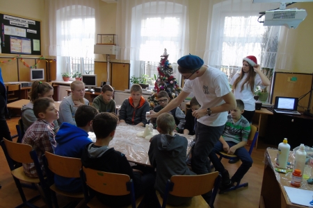 11 grudnia do naszej szkoły przybył AMUL Aktywny Mały Uniwersytet Latający, dzięki czemu nasi uczniowie mogli uczestniczyć w ciekawych zajęciach rozwijających wyobraźnię i rozbudzających ciekawość nauką. Studenci psychologii przeprowadzili we wszystkich klasach oraz w oddziale przedszkolnym zajęcia dotyczące m.in. cieczy nienewtonowskiej, chemii w kuchni, właściwości chemicznych wody, współpracy oraz rozwijania kreatywności, emocji czy rachunku prawdopodobieństwa. W czasie, gdy studenci prowadzali z dziećmi zajęcia, pomysłodawczyni pani prof. dr hab. Anna Izabela Brzezińska spotkała się z rodzicami i dziadkami, by porozmawiać na temat motywowania dzieci.