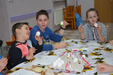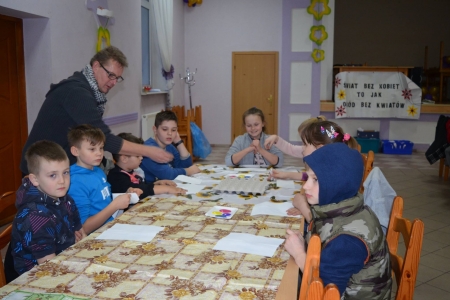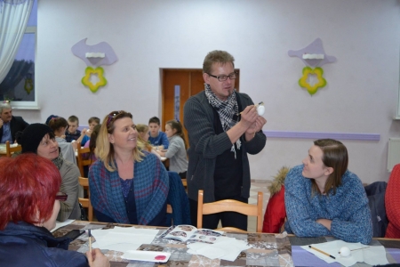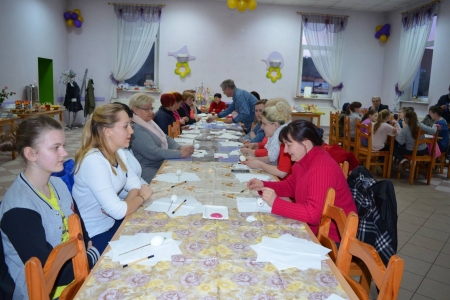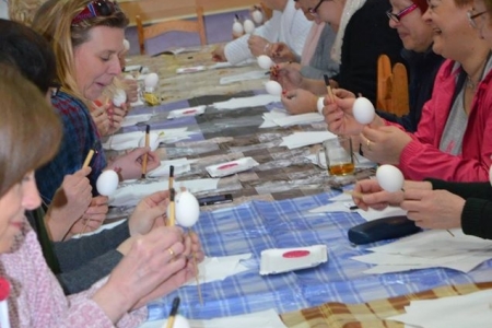 Szczególne miejsce w pracach pana Ryszarda zajmują Wiszeńskie Pisanki i właśnie takie pisanki pan Ryszard uczył wczoraj malować uczestników naszych warsztatów. Warsztaty były zarówno dla dzieci jak i dorosłych. Dzieci uczyły się jak zwykłą bagietką do uszu można wyczarować różne wzory, natomiast dorośli mieli już trochę trudniejsze zadanie. Efektem były piękne, kolorowe pisanki, które udekorują nasze stoły wielkanocne. Oprócz tego Pan Ryszard udzielił szeregu ciekawych rad odnośnie malowania pisanek różnymi metodami. Już wczoraj wstępnie umówiliśmy się na kolejne spotkanie...