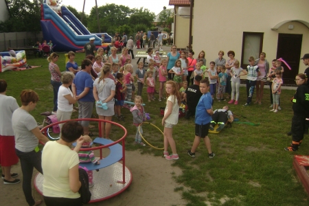 W dniu dzisiejszym zorganizowaliśmy dla naszych dzieci festyn z okazji ich święta. Przybyło około 65 dzieci . Zabawy ,konkursy prowadził pan Andrzej Słowiński. Były dmuchane zamki ,basen z piłeczkami dla najmłodszych, bańki mydlanne, oraz wiele innych zabaw. Impreza trwała od 16 - 19. Pogoda dopisała, dzieci zmęczone ale zadowolone. Ochotnicza Straż Pożarna ze Sułowa na czele z Marcinem Goczlingiem radnym powiartowym stanęła na wysokości zadania i pokazała dzieciom pracę strażaka. Skorzystali przy tym także dorośli, szczególnie przy udzielaniu pierwszej pomocy.