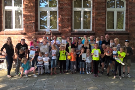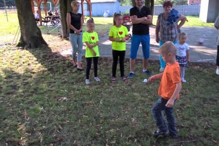 Następnie sześć zgłoszonych drużyn wzięło udział w Potyczkach rodzinnych, tj. czterech konkurencjach sprawnościowych (strzał na bramkę, slalom z balonem, sztafeta z piłeczką pingpongową oraz rodzinne przeciąganie liny). Każda z drużyn o...trzymała "Dyplom Super Rodziny"!
