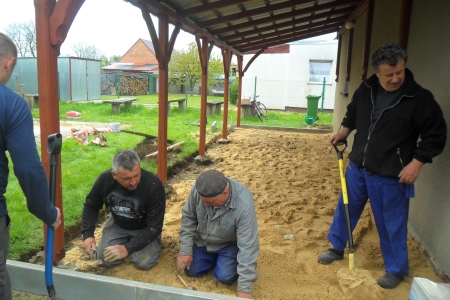 Kilka dni trwało uporządkowanie terenu za remizą, ułożenie kostki pod zadaszeniem oraz utwardzenie i położenie kostki przy krzyżu przydrożnym.