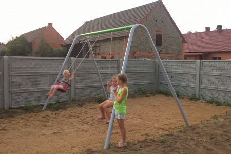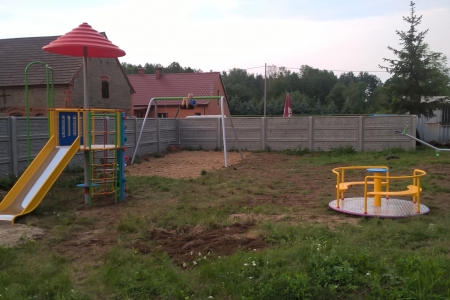 Niestety przed otwarciem musieliśmy jeszcze dostosować się do wymogów Inspektora z UM w Miliczu i wykonać kilka prac. Mianowicie wykorytować strefę bezpieczeństwa pod huśtawką wahadłową oraz wysypać ją piaskiem (około 28 m2).