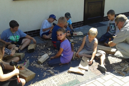 W dniu dzisiejszym odbyły się warsztaty w dwóch grupach: rano o 10 - 13 dzieci rzeźbiły pod okiem Mariana i sołtys a także pani Gieni babci dzieci, które w tych warsztatach uczestniczą. Po południu dorośli wykonywali duże rzeźby związane z przyrodą. Pieniądze pozyskaliśmy z programu Funduszu Inicjatyw Obywatelskich MRPiPS. Następne spotkanie w środę , także w dwóch grupach.