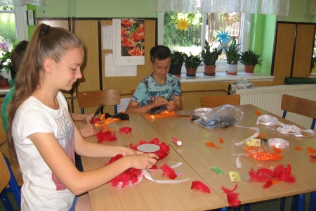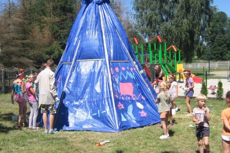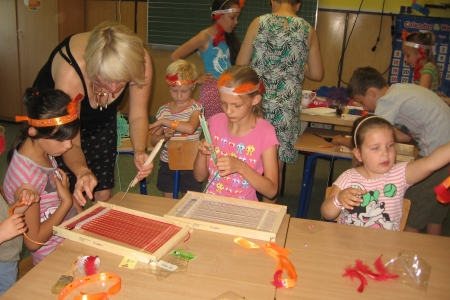 Jeden dzień dzieci spędziły w wiosce indiańskiej TATANKA oraz odwiedziły termy Uniejów. Kolejne dni były pełne atrakcji przy szkole, wśród nich: wykonywanie ozdób, talizmanów, naszyjników, wisiorków, amuletów, kolczyków w stylu indiańskim oraz malowanie wykonanego przez członków Stowarzyszenia „w Siodle” wigwamu, a także zwiedzanie okolic bryczką oraz przejażdżki konne dzięki Ośrodkowi Jeździeckiemu „JURAND”.