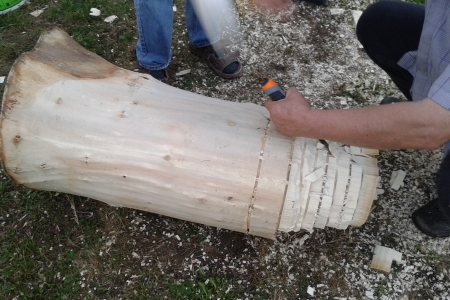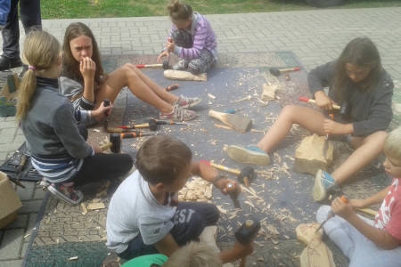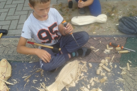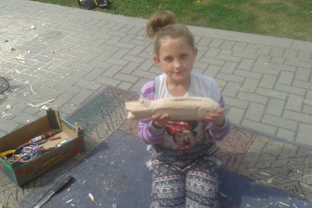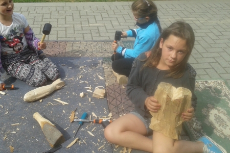 Dziś w kolejnym dniu trwania warsztatów spotkały się dwie grupy dzieci i dorosłych. Dzieciaki powoli kończą swój udział, bo i wakacje się kończą. Czas do szkoły, kto nie skończy może jeszcze rzeźbić na zajęciach z dorosłymi do 15 września. A dorośli ? jakoś dają radę mają jeszcze wiele do zrobienia. Niektórym wychodzi całkiem nieżle sam Marian zdziwiony takie talenty....