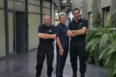 Andrzej Linek - mieszkaniec Duchowa, tym razem na planie filmowym "Pierwszej miłości". Sceny kręcono w wytwórni filmowej ATM we Wrocławiu przy ul. Dwa Światy. Tym razem w roli... policjanta