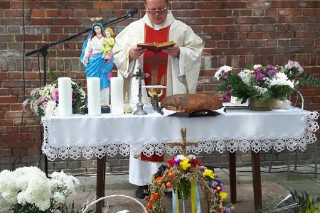 Rozpoczęły się o godzinie 14:30 od Mszy Św. Dożynkowej odprawionej przez ks. Marcina Nesterowicza. Mieszkańcy postarali się o to żeby nasze wspólne spotkanie przy modlitwie było jeszcze bardziej uroczyste - dzieci przygotowały czytania, psalm, mieszkańcy przynieśli dary do ołtarza. Po Mszy Św. ks. Marcin poświęcił nasz nowy plac zabaw oraz wiatę.