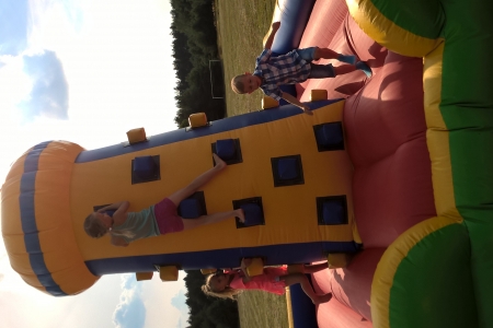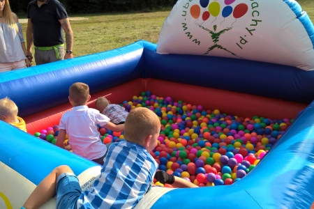 Atrakcją dla dzieci były zamki dmuchane, a dorośli rozegrali mecz siatkówki na nowym boisku.