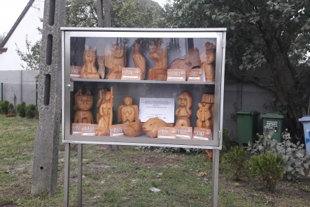 Wreszcie wykonane w ubiegłym roku rzeźby znalazły swoje miejsce. Teraz można je podziwiać. Stoją w gablocie , która jest dostępna dla zwiedzających. Gablotę wykonała firma Somet ze Sułowa w ramach projektu dofinansowanego z Polsko- Amerykańskiej Fundacji Wolności. Gablotę pomogli zamontować mieszkańcy naszej wioski, którzy biorą udział w projekcie. wszystkim za wszystko dziękujemy. Przed nami jeszcze montaż rzeźb dużych w ilości 10 sztuk. Rzeźby te będa rozmieszczone w różnych miejscach naszej wioski.
