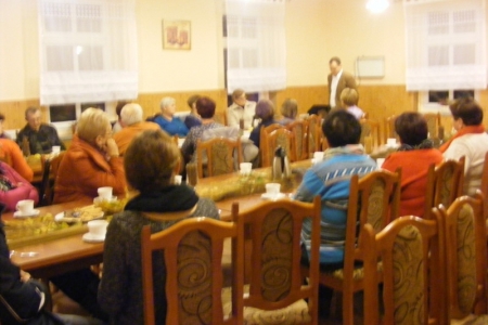 W ramach projektu pn."Białe podwieczorki" odbyło się I spotkanie z lekarzem Tomaszem Hołowatym. Poświęcone było cukrzycy i jej zapobieganiu oraz walce z bólem. Mieszkańcy z uwagą sluchali prelekcji a po jej zakończeniu zadawali pytania i prowadzili rozmowy indywidualne.W międzyczasie chętni mogli skorzystać z pomiaru poziomu cukru i ciśnienia tętniczego , które przeprowadzała pielęgniarka Justyna Frankiewicz.