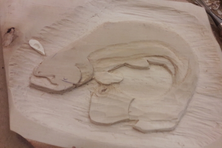 Za kilka dni zakończymy projekt p.t. "Nie pójdziesz w ogień klocku mój" Ale póki co pracujemy nad swoimi tabliczkami, wychodzi to nieżle a to za sprawą naszej instruktorki Patrycji, która dzielnie spisuje się na każdych warsztatach. Uczestnicy poznali nową metodę pracy z drewnem tzw -wybieranie. Tabliczki te przyozdobią nasze domy. Pod każdym numerem posesji będzie tabliczka z wizerunkiem ryby. Każda inna ,niepowtarzalna i dla każdego najpiękniejsza.
