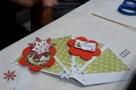 W piątek odbyły się w świetlicy w Łazach Małych warsztaty z tworzenia kartek świątecznych. Wzięło w nich udział 12 osób, zarówno dorośli jak i dzieci. Każdy uczestnik wykonał 2 kartki. Jedną stojącą w kształcie choinki oraz drugą z okienkiem tzw. shaker-box. Wszyscy świetnie się bawili przez trzy godziny i zadowoleni wrócili do domów, oczywiście że swoimi pracami. Warsztaty poprowadziła prezes Stowarzyszenia Aktywne Łazy - Izabela Chaszczewicz