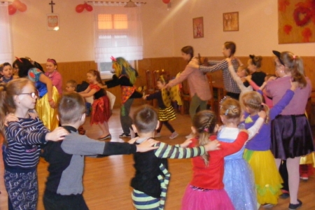 Bal kostiumowy był ostatnim dniem zimowych ferii w Potaszni.Wspaniałe kostiumy, wesołe zabawy prowadzone przez animatorkę - p. Ilonę,rytmiczne tańce i pląsy stworzyły radosną i niepowtarzalną atmosferę całej zabawy. Jak na koniec stwierdziły dzieci było ...kaczo, byczo i indyczo,czyli w tłumaczeniu,było fajnie.