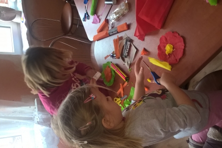 Na początku zagraliśmy w gry przyrodnicze, a później nasi najmłodsi wykonali prace plastyczne tj. malowały farbami i kredkami oraz wykonały kotyliony ![]()